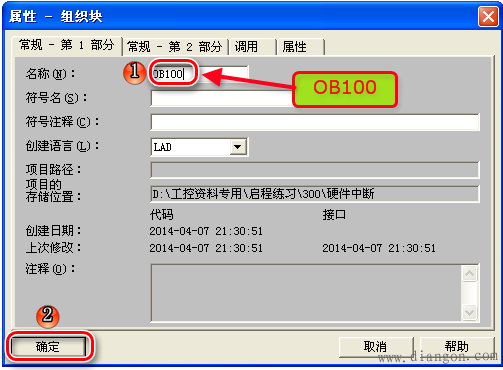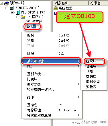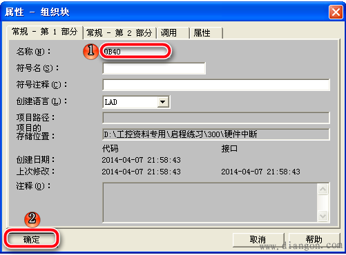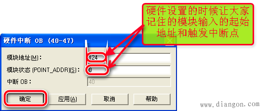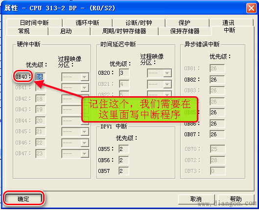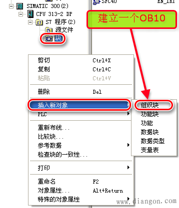 建立OB40(刚才在CPU设置里面记下的硬件中断的组织块号码)