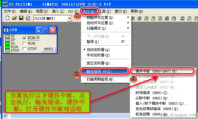 保存,编译,下载,等待时间到了CPU停机 硬件中断: 不是所有的CPU都支持硬件中断,只有CPU上自带了输入点的CPU才能支持硬件中断