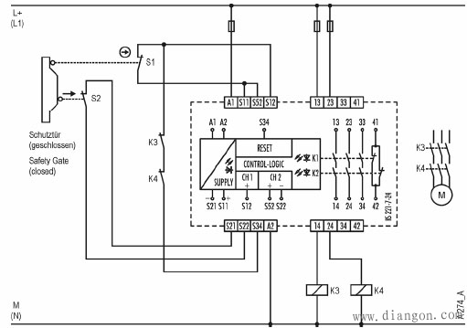 安全继电器并不是“没有故障的继电器”,而是发生故障时做出有规则的动作,它具有强制导向接点结构,万一发生接点熔结现象时也能确保安全,这一点同一般继电器是完全不同。 安全继电器是由数个继电器与电路组合而成,为的是要能互补彼此的异常缺陷,达到正确且低误动作的继电器完整功能,使其失误和失效值愈低,安全因素则愈高,因此需设计出多种安全继电器以保护不同等级机械,主要目标在保护暴露於不同等级之危险性的机械操作人员。 |