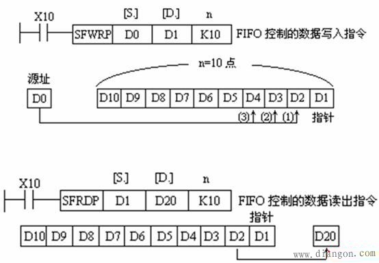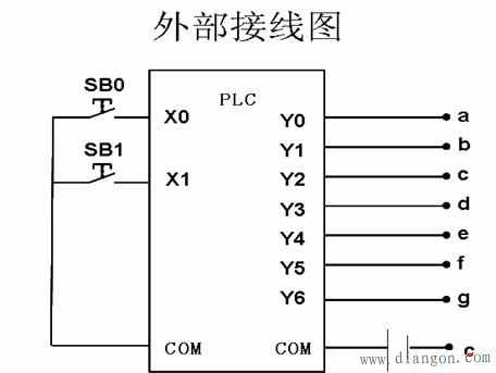 5、先入先出(FIFO)写入指令SFWR、读出指令SFRD ![]() 案例:数码管显示控制 用PLC控制七段数码管循环显示数字0~9,显示间隔1s。 LED数码管工作原理