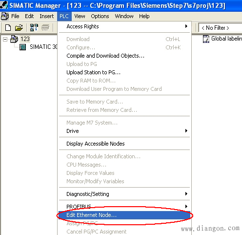 使用CU240S PN或CU240S PN-F控制单元的G120变频器支持Profinet通讯。要进行Profinet通讯,需要为变频器设置IP地址,在网络中,该地址必须是唯一的。 下面介绍如何为G120变频器设置IP地址。 首先,在硬件上完成PC机以太网接口与G120变频器控制单元PN口的连接,可以使用网线,建议使用西门子专用电缆与接头。并在“Options” → “Set PG/PC Interface”菜单中,完成相关设置。 在“SIMATIC Manager”的“PLC”菜单(图1)中,打开“Edit Ethernet Node”对话框(图2)。