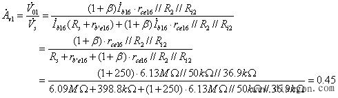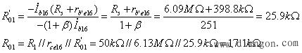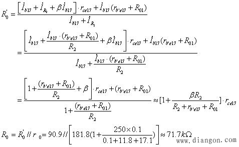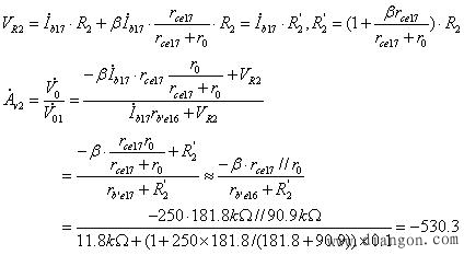 图3 (1)放大倍数计算 由图3(b)可得, (2)输入电阻计算 (3)输出电阻计算 第一级的输出电阻为: 输出电阻计算的的电路如图4所示。