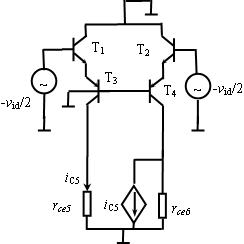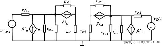 图4 [例2] 图5(a)是uA741运放电路输入差分级放大电路的简化电路图,试画出其电路模型。