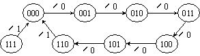 一、状态转换表 将输入及初态代入状态方程和输出方程,算出电路次态和现态下的输 出值。 即:每 7 个 CP ,电路状态回到初态(循环变化)。可对时钟脉冲计数:每经过 7 个时钟脉冲, Y 输出一个脉冲(即由 0 变 1 ,再由 1 变 0 ),可作为一个 七进制计数器, Y 输出进位脉冲。 二、状态转换图