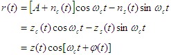 在通信系统中,信道内存在的噪声都可以认为是高斯白噪声,为了减少噪声的影响,提高系统的可靠性,通常在解调器前端设置一个带通滤波器,信道内的高斯白噪声经过带通滤波器后,变成了窄带高斯噪声,对于这种窄带噪声,我们在3.5中已作了详细的讨论。 但在实际通信系统中,信号经过信道传输总会收到加性噪声的影响,因此接收信号是信号与噪声的合成波。这是通信系统中常遇到的一种情况,所以有必要了解余弦波加窄带平稳高斯噪声合成波的统计特性。 设余弦波加窄带高斯噪声的合成信号为 | ||||
