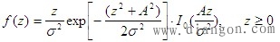 | 可以证明:余弦波加窄带高斯过程的包络服从赖斯(广义瑞利)分布,即包络的概率密度函数为 | ||||