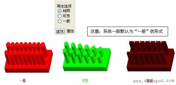 | 注意:阵列总结如表7,其中三种形式的实例,选择不同形式,单击“选项”选择即可完成阵列,如图7。 | |||||||||||||||||||||||||||||||||||