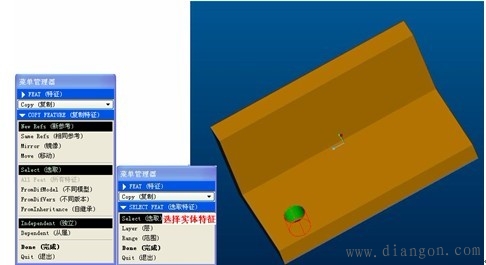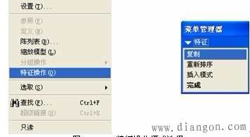 | (1)单击“编辑”|“特征操作”,弹出“特征操作”菜单管理器,选择复制,如图7-4-31。 | |||||||||||||||||||||||||||||||||||