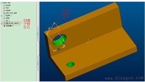 | (4)选中孔的直径尺寸,将其改为20,如图7-4-34。 | |||||||||||||||||||||||||||||||||||