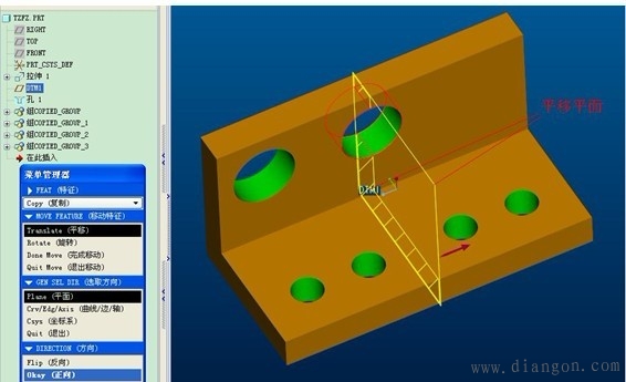 | B.选择“平移”,选择“平面”(参照平面),正向,如图7-3-28。 | |||||||||||||||||||||||||||||||||||