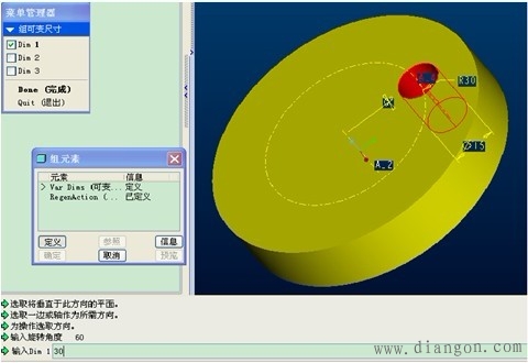 | (3)弹出如图7-4-33的对话框,选择“组可变尺寸”中的Dim1项,单击完成。 | |||||||||||||||||||||||||||||||||||