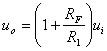 上式表明,反相比例放大电路的电压放大倍数仅取决与反馈电阻RF与输入电阻R1之比。式中负号“—”表示输出电压的相位与输入电压相位相反,即“反相”。 反相放大器的输入电阻Ri=R1。 2、同相比例放大电路 同相比例放大电路如图2所示,输入信号ui加在同相输入端,输出信号uo经过一个电阻RF反馈到反相输入端,形成负反馈。
