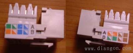 答案: 按B类做,根据上面提示的颜色,把网线相对应颜色的线用打线钳卡下去。 这样就可以了,然后有电脑测试一下,基本上就可以了 网线模块制作 几种网线的水晶头接法图解 我按了这普通 “正常的”网线模块,像以下的这种的顺序来按,也是不通,显示没插入网线..测了好几次,后来我同事昨天去看一下,也搞了很久,2个小时左右回来了,我问 他怎么搞的,他说要相反就通了...没什么注明的。。单单一个模块的(空白的,生产商也太简便了一点吧)。。。我晕了,大家以后要买网线模块就买以下介绍 的这种哈(这种是比较正规的)。哈哈 网线模块制作开始: 先来认识一下网线模块,这个就是装在家里网线插座后面的模块 ,左右两面,上面A、B表示的是两种不同的打线方式,任选一种即可。