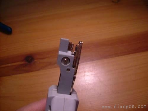 在打线之前我们再来认识一下这个打线的工具:这是打线工具的头,金属的一边(下图右边)是一个类似剪刀的头,可以剪掉多余的先头。