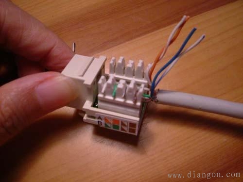 将线分成左右两组,按照A或者B的方式把相应颜色的线卡在模块相应的位置:
