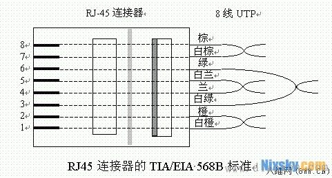 EIA/TIA的布线标准中规定了两种双绞线的线序568A与568B T568A的接法是:绿白、绿、橙白、蓝、蓝白、橙、棕白、棕 T568B的接法是:橙白、橙、绿白、蓝、蓝白、绿、棕白、棕 A和B的不同之处其实就是1和3、2和6号线的位置互换一下。 100BASE-T4 RJ-45对双绞线的规定如下: 1、2用于发送,3、6用于接收,4、5,7、8是双向线。 1、2线必须是双绞,3、6双绞,4、5双绞,7、8双绞。