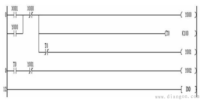 电动机星三角降压起动控制 PLC 梯形图程序如下图所示: