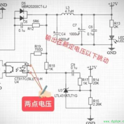 1、变压器(Transformer)浸漆不良:包括未含浸凡立水(Varnish)。啸叫并引起波形有尖刺,但一般带载能力正常,特别说明:输出功率越大者啸叫越甚之,小功率者则表现不一定明显。一款72W的充电器产品中就有过带载不良的经验,并在此产品中发现对磁芯的材质有着严格的要求。(此款产品客户要求较为严格)补充一点,当变压器的设计欠佳也有可能工作时振动产生异响。 2、 PWM IC接地走线失误:通常产品表现为会有部分能正常工作,但有部分产品却无法带载并有可能无法起振的故障,特别是应用某些低功耗IC时,更有可能无法正常工作。 3、光耦(Opto Coupler)工作电流点走线失误:当光耦的工作电流电阻的位置连接在次级滤波电容之前时也会有啸叫的可能,特别是当带载越多时更甚。 4、基准稳压(Regulator)IC TL431的接地线失误:同样的次级的基准稳压IC的接地和初级IC的接地一样有着类似的要求,那就是都不能直接和变压器的冷地热地相连接。如果连在一起的后果就是带载能力下降并且啸叫声和输出功率的大小呈正比。 当输出负载较大,接近电源功率极限时,开关变压器可能会进入一种不稳定状态:前一周期开关管占空比过大,导通时间过长,通过高频变压器传输了过多的能量;直流整流的储能电感本周期内能量未充分释放,经PWM判断在下一个周期内没有产生令开关管导通的驱动信号或占空比过小;开关管在之后的整个周期内为截止状态,或者导通时间过短;储能电感经过多于一整个周期的能量释放,输出电压下降,开关管下一个周期内的占空比又会大……如此周而复始,使变压器发生较低频率(有规律的间歇性全截止周期或占空比剧烈变化的频率)的振动,发出人耳可以听到的较低频率的声音。同时,输出电压波动也会较正常工作增大。 当单位时间内间歇性全截止周期数量达到总周期数的一个可观比例时,甚至会令原本工作在超声频段的变压器振动频率降低,进入人耳可闻的频率范围,发出尖锐的高频“啸叫”。此时的开关变压器工作在严重的超载状态,时刻都有烧毁的可能——这就是许多电源烧毁前“惨叫”的由来,相信有些用户曾经有过类似的经历。 5、空载 这个杂波信号包括了许多不同频谱的交流分量。其中也有许多低频波,当低频波与你变压器的固有振荡频率一致时,那么电路就会形成低频自激。变压器的磁芯不会发出声音。我们知道,人的听觉范围是20--20KHZ。所以我们在设计电路时,一般都加上选频回路。以滤除低频成份。从你的原理图来看,你最好是在反馈回路上加一个带通电路,以防止低频自激.或者是将你的开关电源做成固定频率的即可。 6、大功率开关电源短路啸叫 当输出负载较大,接近电源功率极限时,开关变压器可能会进入一种不稳定状态:前一周期开关管占空比过大,导通时间过长,通过高频变压器传输了过多的能量;直流整流的储能电感本周期内能量未充分释放,经PWM判断,在下一个周期内没有产生令开关管导通的驱动信号或占空比过小;开关管在之后的整个周期内为截止状态,或者导通时间过短;储能电感经过多于一整个周期的能量释放,输出电压下降,开关管下一个周期内的占空比又会大…… 如此周而复始,使变压器发生较低频率(有规律的间歇性全截止周期或占空比剧烈变化的频率)的振动,发出人耳可以听到的较低频率的声音. 同时,输出电压波动也会较正常工作增大.当单位时间内间歇性全截止周期数量达到总周期数的一个可观比例时,甚至会令原本工作在超声频段的变压器振动频率降低,进入人耳可闻 的频率范围,发出尖锐的高频“哨叫”。此时的开关变压器工作在严重的超载状态,时刻都有烧毁的可能——这就是许多电源烧毁前“惨叫”的由来,相信有些用户曾经有过类似的经历. 空载,或者负载很轻时开关管也有可能出现间歇性的全截止周期,开关变压器同样工作在超载状态,同样非常危险。 针对此问题,可通过在输出端预置假负载的方法解决,但在一些“节省”的或大功率电源中仍偶有发生.当不带载或者负载太轻时,变压器在工作时所产生的反电势不能很好的被吸收.这样变压器就会耦合很多杂波信号到你的1.2绕组。 这个杂波信号包括了许多不同频谱的交流分量.其中也有许多低频波,当低频波与你变压器的固有振荡频率一致时,那么电路就会形成低频自激.变压器的磁芯不会发出声音.我们知道,人的听觉范围是20--20KHZ.所以我们在设计电路时,一般都加上选频回路.以滤除低频成份.从你的原理图来看,你最好是在反馈回路上加一个带通电路,以防止低频自激.或者是将你的开关电源做成固定频率的即可。 实例: