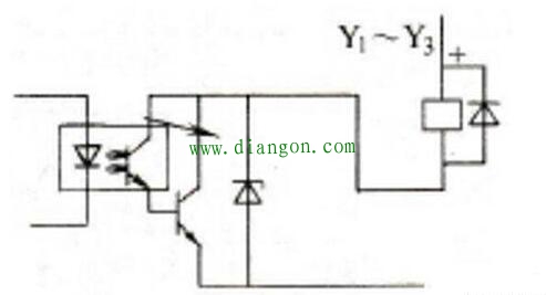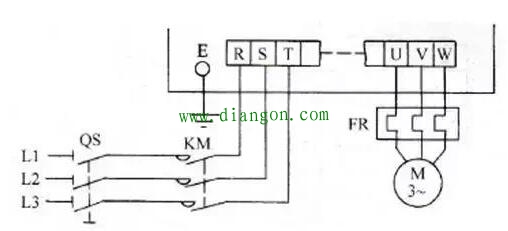 2)变频器的保护功能动作时,继电器的常闭触点控制接触器电路,会使接触器断开,从而切断变频器的主电路电源。 3)不应以主电路的通断来进行变频器的运行、停止操作。需用控制面板上的运行键( RUN)和停止键(STOP)或用控制电路端子FWD (REV)来操作。 4)变频器输出端子(U、V、W)最好经热继电器再接至三相电动机上,当旋转方向与设定方向不一致时,要调换U、V、W三相中的任意两相。 5)变频器的输出端子不要连接到电力电容器或浪涌吸收器上。 6)从安全及降低噪声的需要出发,为防止漏电和干扰侵入或辐射出去,必须接地。根据电气设备技术标准规定,接地电阻应小于或等于国家标准规定值,且用较粗的短线接到变频器的专用接地端子PE上。当变频器和其他设备,或有多台变频器一起接地时,每台设备应分别和地相接,而不允许将一台设备的接地端和另一台的接地端相接后再接地。 2、控制电路端子 1)用接点输入时,使用接触可靠性高的接点。 2)出厂时,FWD-CM用短路片连接。通电后,只要按动触摸面板上的RUN键,即正转运行,按STOP键即停止运行(在触摸面板操作方式下)。 3)出厂时,外部报警输入端子THR-CM间已连接短路片,使用时要卸下短路片,与外部设备异常接点串接。若没有此接点,就不要卸下短路片。 4)模拟频率设定端子(13,12,11,C1)是连接从外部输入模拟电压、电流、频率设定器(电位器)的端子,在这种电路上设接点时,要使用微小信号的成对接点。 5)变频调速系统中的接触器、电磁继电器以及其他各类电磁铁的线圈,都具有较大的电感,在接通和断开的瞬间会产生很高的感应电动势,在电路内会形成峰值很高的浪涌电压,影响变频器的正常工作。可采用吸收电路来控制。开路集电极输出端子连接控制继电器时,可在励磁线圈的两端连接吸收电涌的二极管,如图所示。