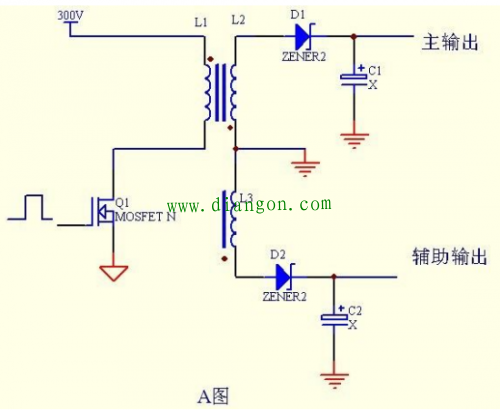图 4 上面是一个开关电源的简化图。Q1 是开关管 D1 是整流管。 (图四) 混合激励方式: 如图 5 图所示: