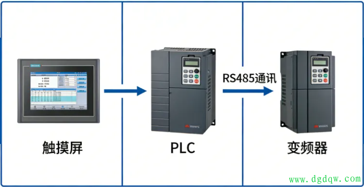 干工业自动化的都懂,触摸屏、PLC、变频器,这哥仨就是现场调试的“铁三角”!触摸屏管显示和操作,PLC管逻辑控制,变频器管驱动电机,三者缺一不可。但很多电气新手,一碰到三者通讯调试就头大,尤其是老板要求“屏幕上能看电机转速、电流,还能直接改频率”时,要是没理清数据流向,直接抓瞎,半天调不出效果。 今天就用大白话,拆解这三者怎么通过RS-485通讯这条“隐形高速路”传数据,新手也能一看就懂,避开踩坑。 一、谁是“大管家”?核心架构记牢 最常见的架构的就是:变频器→PLC→触摸屏,这里边PLC是绝对的核心,也就是主站,另外俩都是配合干活的。 1.变频器(从站):就是个“执行者”,只管驱动电机,手里握着电机的实时数据——电流、频率、故障代码,啥也不多管。 2.PLC(主站):妥妥的“大管家”,主动向变频器要数据、下指令,所有控制权和数据汇总,都在它手里。 3.触摸屏(hmi):就是“显示器+操作台”,不直接找变频器麻烦,只跟PLC要数据、发指令,简单又高效。 有人问,为啥不直接让触摸屏连变频器?其实也能行,但要是PLC需要根据电流大小做逻辑判断(比如电流过大立马停机),经过PLC中转,更安全、逻辑也更闭环。 二、三者怎么“对话”?(恒压供水为例) 以恒压供水项目为例,实现两个核心功能:屏幕看变频器频率、电流,屏幕输入频率控制电机,一步步教你操作。 1. 物理接线 RS-485通讯一般用两线制(A、B),接线别瞎接:变频器的A+、B-,对应连PLC通讯扩展模块的485端口,手拉手连接,屏蔽层一定要接地,不然现场干扰会让通讯失灵。 PLC和触摸屏连接,两种方式任选:要么用串口线,直接连PLC编程口和触摸屏COM口;要么用网线,速度更快,不影响数据流向。 2. 变频器参数 不同品牌变频器菜单不一样,但逻辑都相同,重点设4个参数:通讯协议选Modbus RTU(工控界“普通话”),波特率设9600bps(语速要一致),数据位/停止位/校验设8-N-1,站号设1(相当于变频器的身份证,PLC只认这个号)。 3. PLC编程 用Modbus RTU指令编通讯程序就行,举两个最常用的场景: 读频率:PLC发指令“呼叫1号变频器,读寄存器0001的数据(假设存频率)”,变频器回复“12.5Hz”,PLC把这个数存到内部寄存器D100。 控频率:触摸屏输30Hz,这个数存到PLC的D200,PLC再把D200的数据写到变频器,电机就按30Hz运行。 4. 触摸屏组态 不用懂复杂协议,只要找对PLC的寄存器地址就行。用WinCC、威纶通等组态软件,放个“数值显示”元件,指向D100,就能看实时频率;放个“数值输入”元件,指向D200,就能直接输频率控制电机。 三、通讯失败?这3个坑别踩 现场调试,通讯失败是常事,记好这3点,少走弯路: 1. 接线别反:A接A、B接B,别图省事瞎接,虽然偶尔能通,但稳定性极差,一定要核对说明书引脚。 2. 加终端电阻:通讯距离超过50米,首尾两端加120欧姆终端电阻,消除信号反射。 3. 找对地址:向变频器厂家要Modbus寄存器地址表,不知道电流、频率存在哪个地址,PLC根本读不出来。 其实这三者的485通讯,就是一场“接力赛”:变频器起跑(产生数据),PLC中转(采集、转发指令),触摸屏终点裁判(显示、操作)。只要理清寄存器地址关系,再复杂的调试,也能轻松搞定!